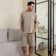 简约圆领设计搭配同色短裤,三色皆为稳重耐看的日常百搭色,穿起来就是干净俐落又不油腻。