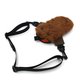 外层采用 Steiff Schulte 的顶级马海毛,内里则是高耐用性的 Cordura 尼龙。腹部同样使用 Cordura 尼龙,口腔内部则为橘色尼龙。内含填充物,提供些微的缓冲效果(但无法提供足以保护内容物免受摔落损坏的保护力)。装上附赠的可调式背带后,可斜背或挂在腰间。