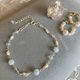 天然石海蓝宝配以形状各异的淡水珍珠和水晶。 添加了银链,给人清凉的感觉。