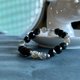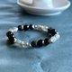 黑色水晶为基调,中段以闪烁着冷色光晕的灰月光点缀,搭配银色磨砂隔珠,反射的光泽非常低调。整体设计沉稳内歛,富有变化却不张扬。让手链成为妳日常的守护,为妳抵挡负能量,平静妳的内心。