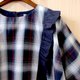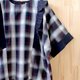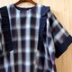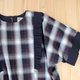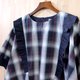 **【 连袖荷叶边剪接上衣/ 深蓝格纹 】**