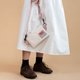 - Null bag原创斜挎小包。小尺寸的随身斜挎小包,可以放下手机,卡片与零钱。采用刺绣工艺将插画布贴融入到包身正面,便携实用且美观。