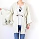an authentic Japanese kimono jacket with bamboo pattern. It is hand-dyed using Shibori technique on the entire surface. The lining has abstract pattern. ties on front. such a beautiful jacket! You will feel Japanese craftsmanship. It can be worn over a long kimono or with western clothing.