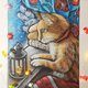 “猫的肖像。舒适的冬夜。”- 纸,油画棒。原创油画棒作品。作者科科琳娜·纳德日达。