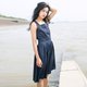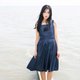大气的深蓝色瞬间就将人的气质提升起来了,收腰的设计更是勾勒出一个完美的小蛮腰。