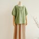棉麻质感 夏日透气半袖罩衫 简约风格 慵懒百搭 灰绿调色 240616-1