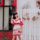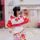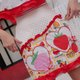 decorated with vintage curtains that have a large strawberry print and are fluffy, adorable, and just a little sexy.