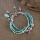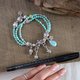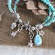 • **材料**:泰国银、亚马逊石 (4 mm)、葡萄石 (8 mm)、拉利玛海纹石 (13x18 mm)、和925纯银(圆珠 3.5 和 4 毫米)。