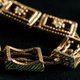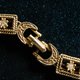 优雅的金色铜质,每一环都精心镶嵌着透亮的锆石,光泽柔和,四周细腻的麻花边装饰,增添了复古的气质。连接扣处刻有月牙般的弧形,犹如微微上扬的月牙,添加了一抹神秘的东方情调。