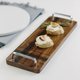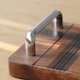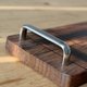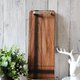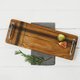 这是款印度油木制作的砧板,印度油木属于柚木的一种,硬度高,收缩率小,对白蚁及真菌类的抵抗力大,是常见的家具制造材料之一。本餐盘长达42厘米,有着圆弧形的银色把手设计,方便拿取,油木的表面有现代蚀刻格纹的雷刻图腾,时尚、独特且特别。