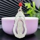 人生至美,应有所爱,立体双面镂空雕刻宝宝站佛,寓意福气连连,福慧双修。玉坠质地细腻油润,色泽清秀雅致。