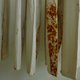 是利用锈铁来进行染色。在潮湿的环境下,将天然纤维与锈铁接触,静待时间的浸沁让锈色染入纤维里,进而呈色。