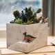 风格简约的水泥阶梯盆,搭配丰富的自然植物组合,以及恐龙摆饰,打造一座屋顶上的侏罗纪。