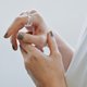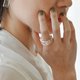 日本东京手工制作。 玻璃上闪烁着晶莹的条纹,如同树枝上层层叠叠的透明霜花。 开放式戒指设计,留有空隙,柔和的曲线优雅地修饰您的手腕。您可以透过改变角度来欣赏不同的造型,它也可以用作耳夹佩戴。 尺寸:12-13 *整枚戒指均为玻璃材质。