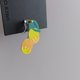 拿出耳环夹上的球针,小心把针穿过吊片,并一同插进耳夹孔内。