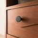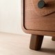 *材料:柚木实木贴皮(本体) / 松木实木(柜脚) / 塑胶贴皮夹板(抽屉) / 二段式滚珠不锈钢滑轨 / 铁灰金属手把