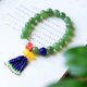 **简介:**原创天然碧玉手链,精美老坑料,搭配南红玛瑙 青金石 和田白玉 绿松石 点缀蜜蜡葫芦吊坠 青金石流苏 尺寸9.5mm,手链适合净手围16厘米左右佩戴,留言备注净手围尺寸。福利价,进店关注店铺送优惠券!
