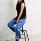 3. 上宽下窄的锥形裤型,时尚显瘦