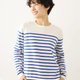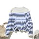 随时可穿的信赖条纹针织衫 撞色设计 长袖毛衣 白 x 蓝 240918-1