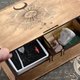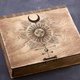- Tarot card & crystals extended wooden storage box. The internal compartment is divided into 3 parts - 1 part for Tarot deck and 2 drawers for crystals. Perfect for keeping your Tarot cards, tea, crystals and everything you want to put inside. This makes a great gift for someone studying Wicca or divination.