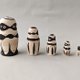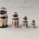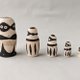 - Matryoshka with nested wooden dolls. I thought of a doll that would suit a monotone or mode room. The smallest child is a penguin.