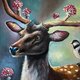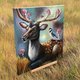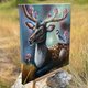 这幅独特的奇幻画作描绘了鹿角上长满蘑菇的鹿。引人注目且富有吸引力的情节。此艺术品采用专业压克力颜料绘制于已绷紧的纯棉画布上。情节独一无二。