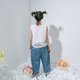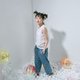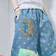 - 牛仔点点宽直筒裤 刺绣的点点浅牛仔,前片有两处挖破补丁喵咪布料进去,压车制造出一点点破裂须须感,直筒宽裤下摆在车上喵咪滚边布料,跟一般阳刚的牛仔不同,有点可爱的感觉,适合夏日风情的女孩们。