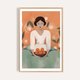 《橘子与女人 Lady with Tangerines》呈现一位沉静女性的静物场景。画作以抽象与写意的笔法勾勒人物与果实的形象,搭配对比色块与极简线条,使情绪与色彩达到和谐平衡,呈现一种内敛的诗意与艺术生活感。