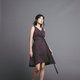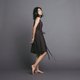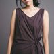 V领 胸前打褶 不规则裙摆 腰部绑绳