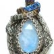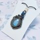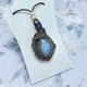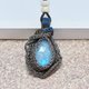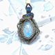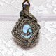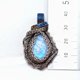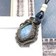 月光石包裹着钛金属丝。 表面有一个玫瑰色的切割,是一系列的三角形。