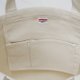The tote is a durable natural-colored canvas material, and it is an outing tote with an A4 size that fits perfectly.