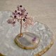 ✨底座为玛瑙片(每一颗水晶树玛瑙片为随机配置,商品照片为范例,无法指定玛瑙片样式,请悉之),铜线编织缠绕紫水晶与粉水晶。