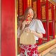100% Handmade water Hyacinth woven bag from Thai local group with modern design. This bag has wooden bead handle. The design of this bag has a very good and clean rim job. It has a double protection to protect your stuff from falling out of the bag with zippers that go around the bag and a wooden bead button on the top closure. You can hold it with forearm or wear it in a cross body style as you like. There are 2 colors of handle: "White" & "Brown”