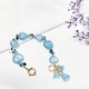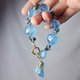 **海蓝宝**为稀有**魔鬼蓝**品种,蓝得浓郁、带彩虹光,磨制圆润心型(**心想事成、心慈好善**)珠饰,设计为蝴蝶结(领结)链身,象征**节节高升、高风亮节**。