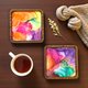 1. 杯垫表面包含一层进口non-toxic环氧树脂,耐热,可以摆放一杯热饮,但不能放入微波炉或洗碗碟机。
