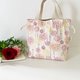 浪漫花火印花棉布,贴有内衬略增加硬挺度,内里层前后各有一个口袋,可以放置小零钱包、手机等零散小物。