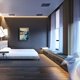 日落时分。游艇和帆船停泊并遮盖。太阳不可见,但眩光在天空和水面上闪烁,预示着新的一天和龙骨下一百英尺的景象。