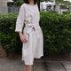 A classic yet flattering 3/4 sleeved linen dress, with the option of a waist belt tied around for a more structured look. If you would prefer a more looser fit, wear without the belt.