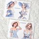 - 名称:蓝色夏日女孩 材质:牛皮纸贴纸 片数 :2片,4种/共8种。 尺寸:11 x 8 厘米 ★注意事项★ 这是一张可剪下并使用的贴纸。 是从韩国寄来的。