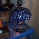 设计师很喜欢复古的事物,在日本看到台湾少见的玻璃镶嵌作品就忍不住的爱上了。这只小台灯是手工制作,一小块一小块的玻璃组合起来非常耗费工时,灯座是有着非常可爱的葡萄叶蔓藤造型,灯罩是黄铜焊锡蓝色玻璃后再进行染黑的工序。