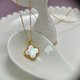 天然海水珍珠白贝母泛着七彩的光泽,在各种光线的映衬下呈现出完全不同的光影色彩,我们把它打磨成四叶草意象,高约15mm,由复古的18K金扎实包裹,让所有的美好的感情在四叶草的中心闪闪发光。市场上有各种各样的四叶草供应,但能以品质支撑起价值,我们有信心。另建议,可以将此四叶草与单颗珍珠吊坠混搭佩戴,万种风情,效果更赞哦。