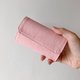 【福利品】微瑕出清/桃子牛奶 粉红色帆布 可水洗纸 零钱包/卡夹