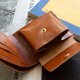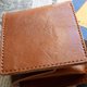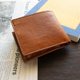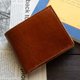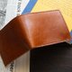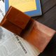 这是一款采用意大利 Il Ponte 皮革厂 Bruciato Lucido 皮革制成的对折钱包。皮革经过植物鞣制后,表面经过手工染色,再以熨烫处理赋予光泽,呈现出皮革独特的质感。