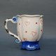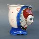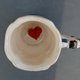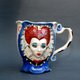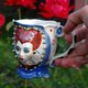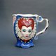 手工制作的瓷杯。 “爱丽丝梦游仙境”风格的明亮杯子。神话般的红心皇后的浅浮雕。救济仅在外面;杯子里面是均匀的。底部有一个惊喜:釉下画的心形。