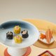 双色烧卖 主要食材:新西兰牛肉、无激素鸡肉、樱花虾、红萝卜、黄姜粉、鸡蛋、竹碳粉和蕃茜