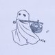 这张邮票是个披着布的鬼魂,四处游荡以获得糖果。您可以在布的皱纹上写一则消息。