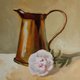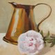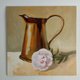 铜咖啡壶粉红色画是用优质油画在纸板上的画布上制成的。