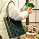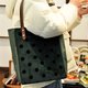 绿色波点包:天鹅绒面料,两侧面和底部同样是真皮拼接。