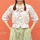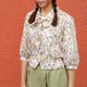 - ✔淡淡的米黄底,搭配梦幻的茶花绘画~超柔美啊! ✔短版设计~可爱的泡泡袖搭配领绳的可以绑成蝴蝶结,复古又可爱! ✔无论单穿或是当罩衫都非常显着!