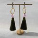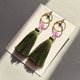 此款流苏耳环,以松树(Pinus)的挺拔姿态,以及即使在寒冬亦不褪色的生命力为灵感。深邃的绿色流苏,在光线照射下散发静谧的光泽,随着摆动展现沉稳的存在感。点缀其间的淡紫色珠饰,增添了不过于厚重的轻盈感,是一款兼具高雅与柔美华丽,专为成熟女性设计的单品。